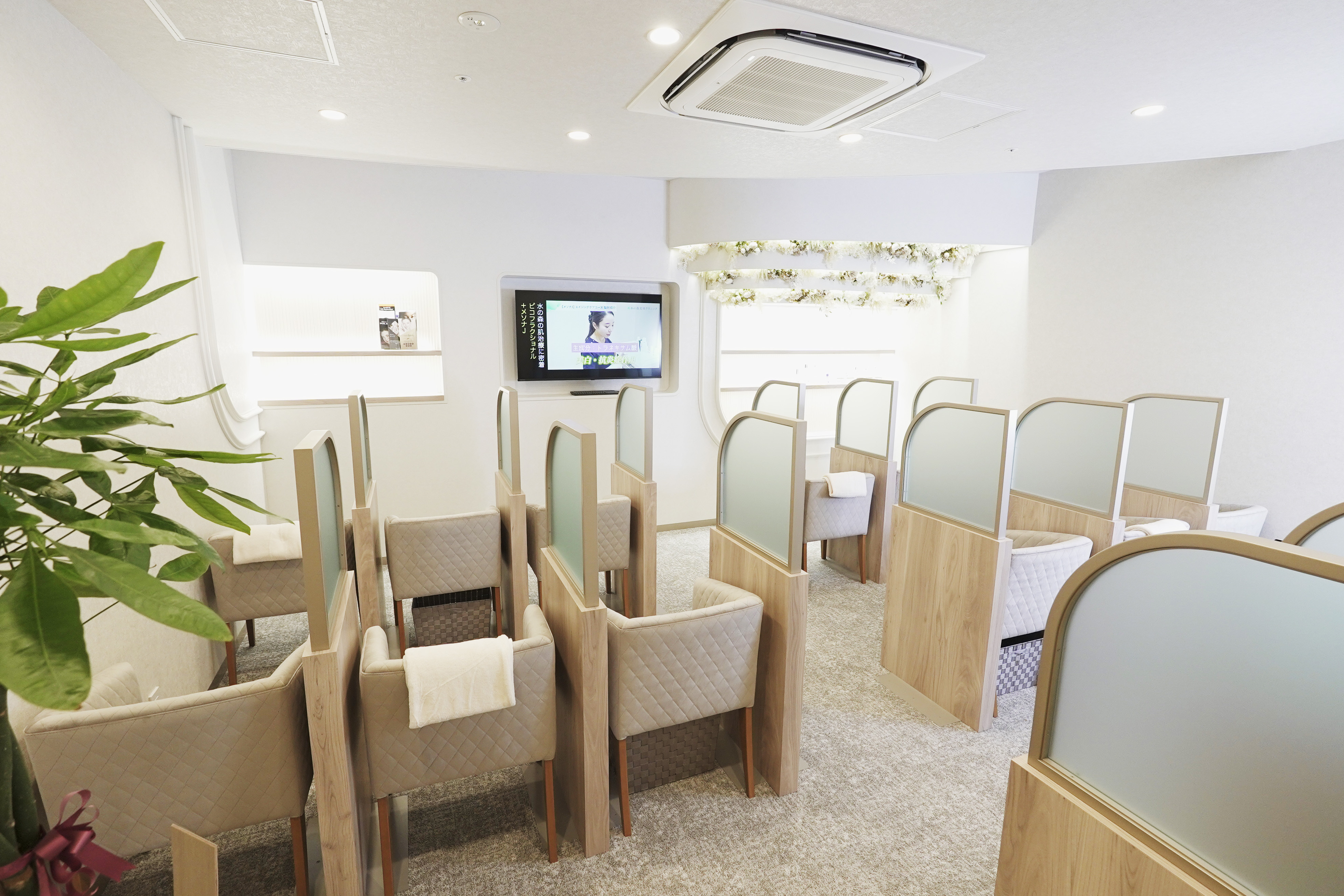 また、心斎橋院では美容皮膚科も併設しており、これまで銀座院と名古屋院でのみ受けられた皮膚科治療を関西圏でもお受けいただけるようになりました。美容外科から美容皮膚科まで、総合的な美容医療を一つのクリニックで完結していただけます。院内は清潔感のある明るい空間で、患者様にリラックスしてお過ごしいただけるよう細部まで配慮した設計となっています。