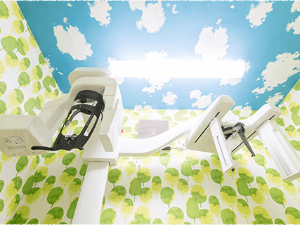 半個室の診療室、キッズスペースを完備し、お子様連れの親御さんも安心して受診いただけます。また、精密な診断のためのCT機器、痛みの少ない治療のためのレーザー治療器、不安の強い方のための笑気吸入鎮静法など、安心・安全な治療のための設備も充実させております。
